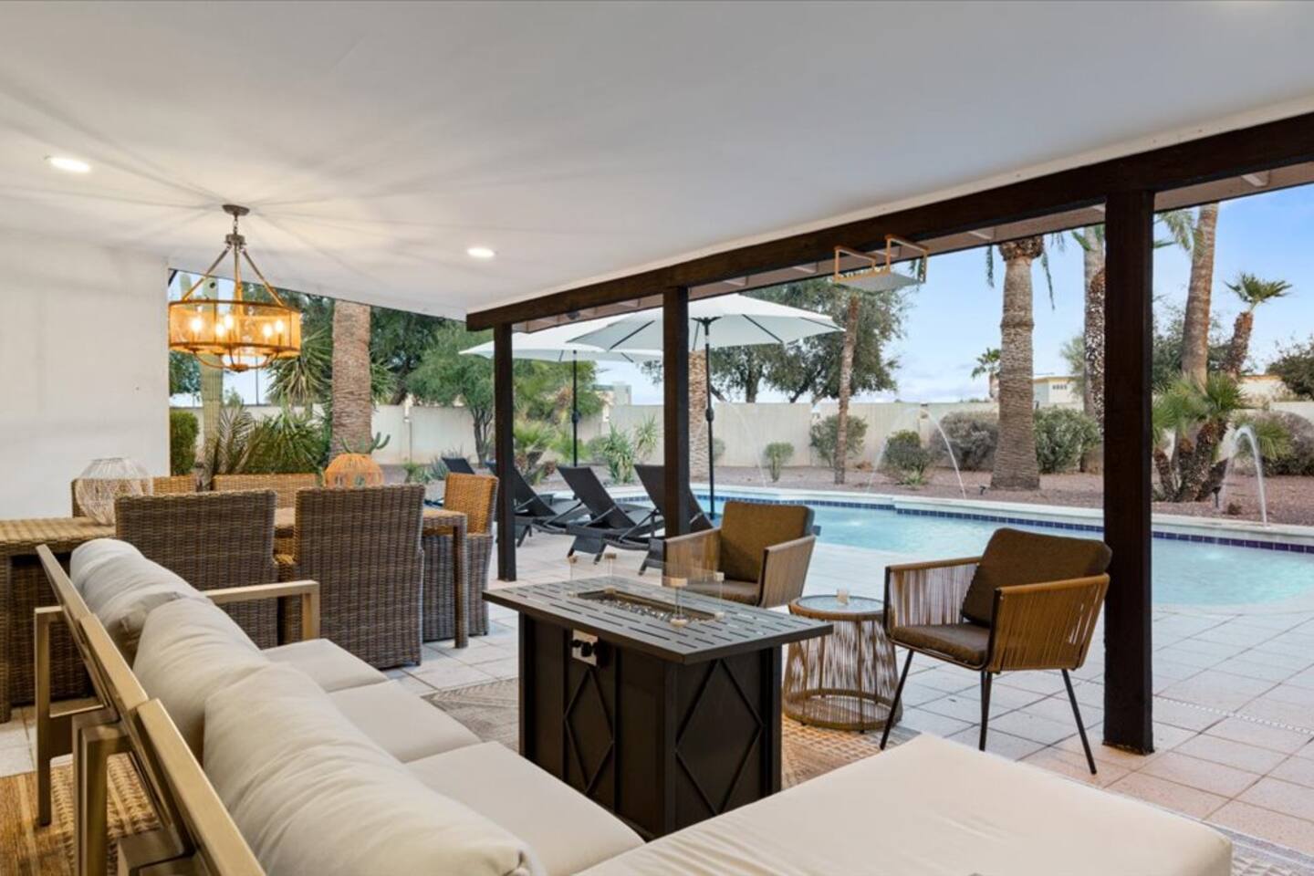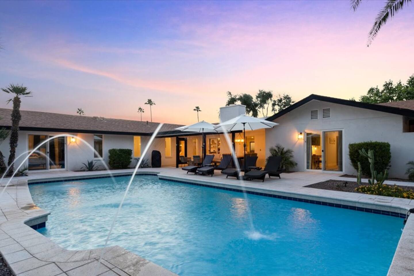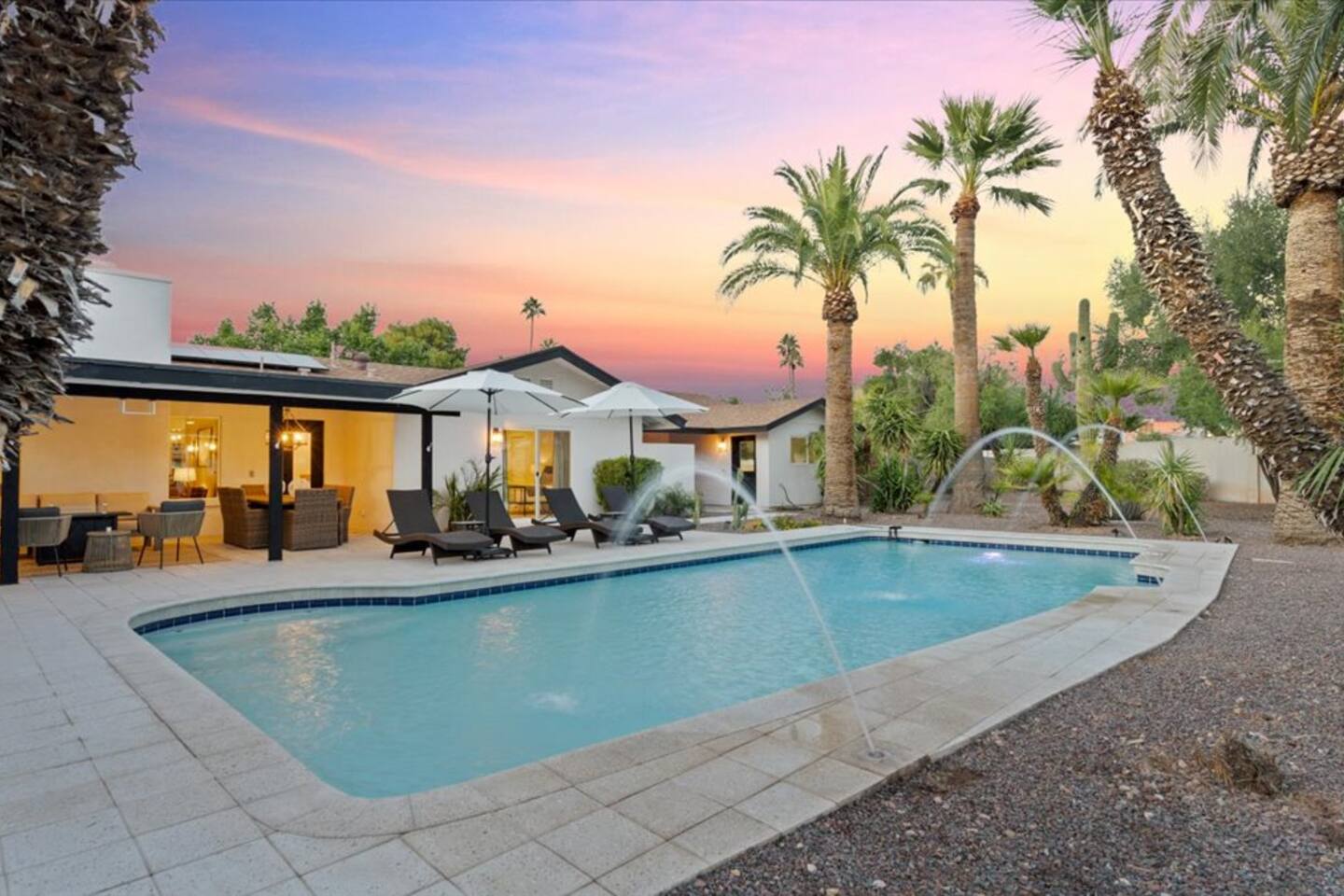 Plenty of room to spread out! Gorgeous home, Remodeled in historic litchfield park, wigwam neighborhood. 3 king bedrooms and 4th bedroom with 2 queens, huge bathroom with double sinks and large shower, oversized walk in closet. Each bedroom has its own tv . 4 total bedrooms plus a lounge/additional tv & game area. Fully remodeled with huge gourmet kitchen, massive backyard with pool, firepits in front and back. Multiple outdoor spaces for you to enjoy.