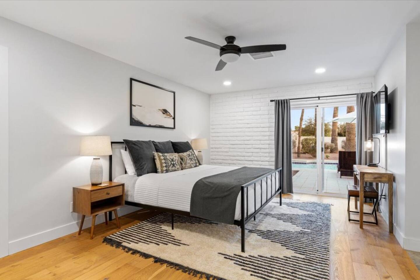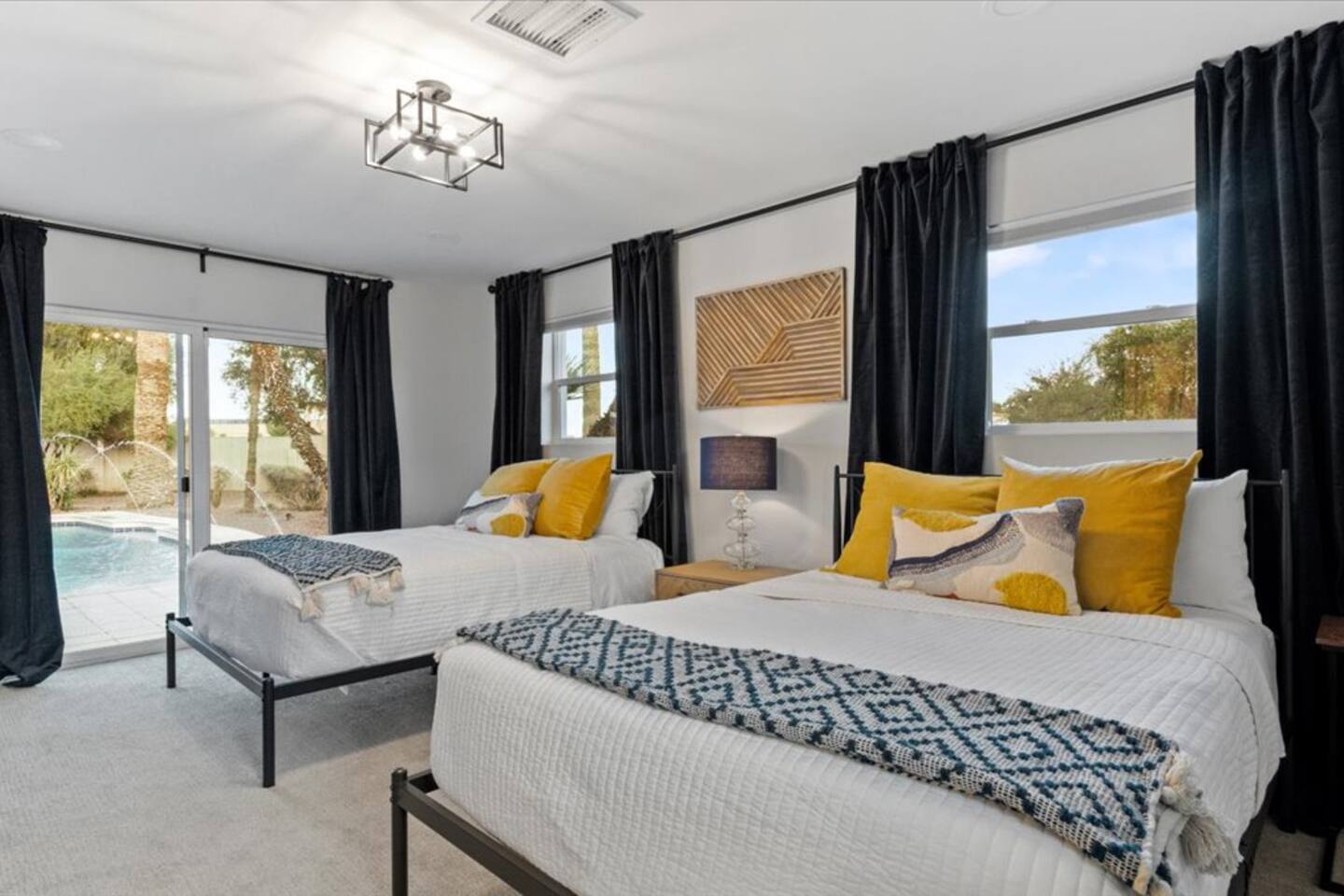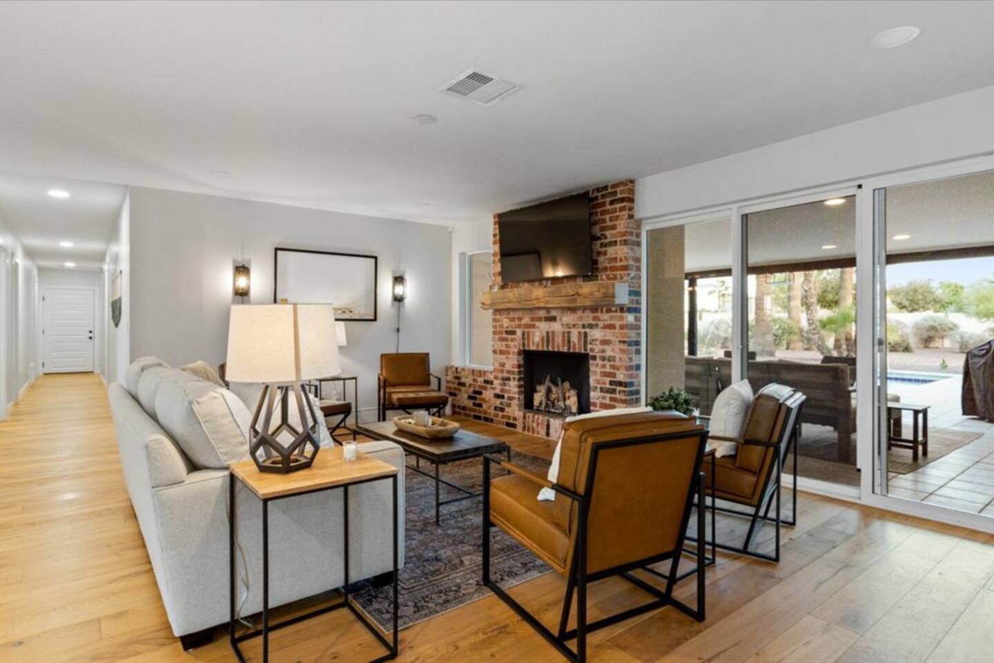 Plenty of room to spread out! Gorgeous home, Remodeled in historic litchfield park, wigwam neighborhood. 3 king bedrooms and 4th bedroom with 2 queens, huge bathroom with double sinks and large shower, oversized walk in closet. Each bedroom has its own tv . 4 total bedrooms plus a lounge/additional tv & game area. Fully remodeled with huge gourmet kitchen, massive backyard with pool, firepits in front and back. Multiple outdoor spaces for you to enjoy.